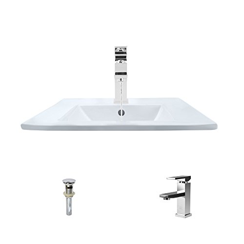 Cheapest 🛒 MR Direct V310-W-720-C White Porcelain Vessel Sink Faucet and Pop-Up Drain in Chrome, 720